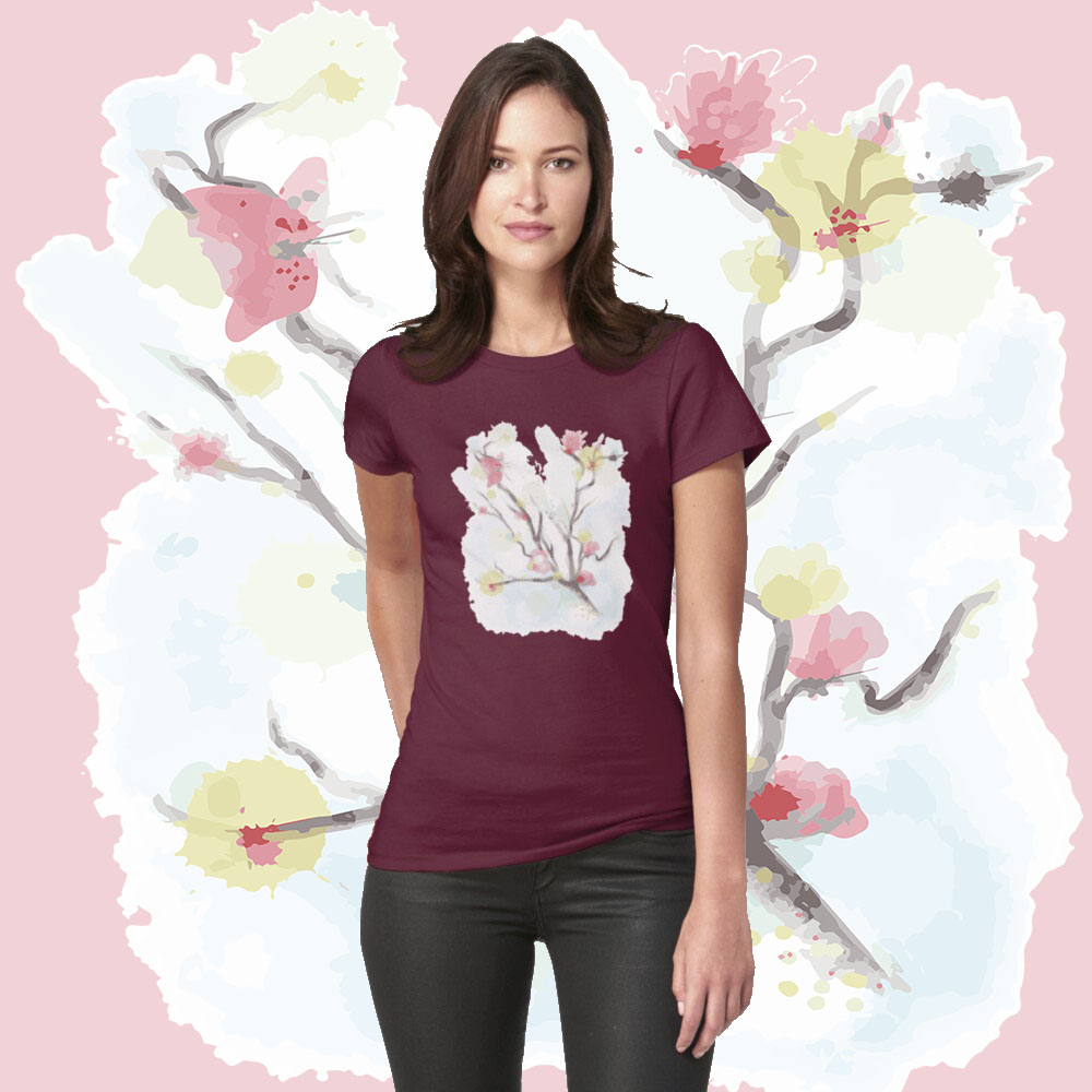 T-Shirt Kirschblüte (M) + "Das letzte Einhorn" Täschchen (M)
